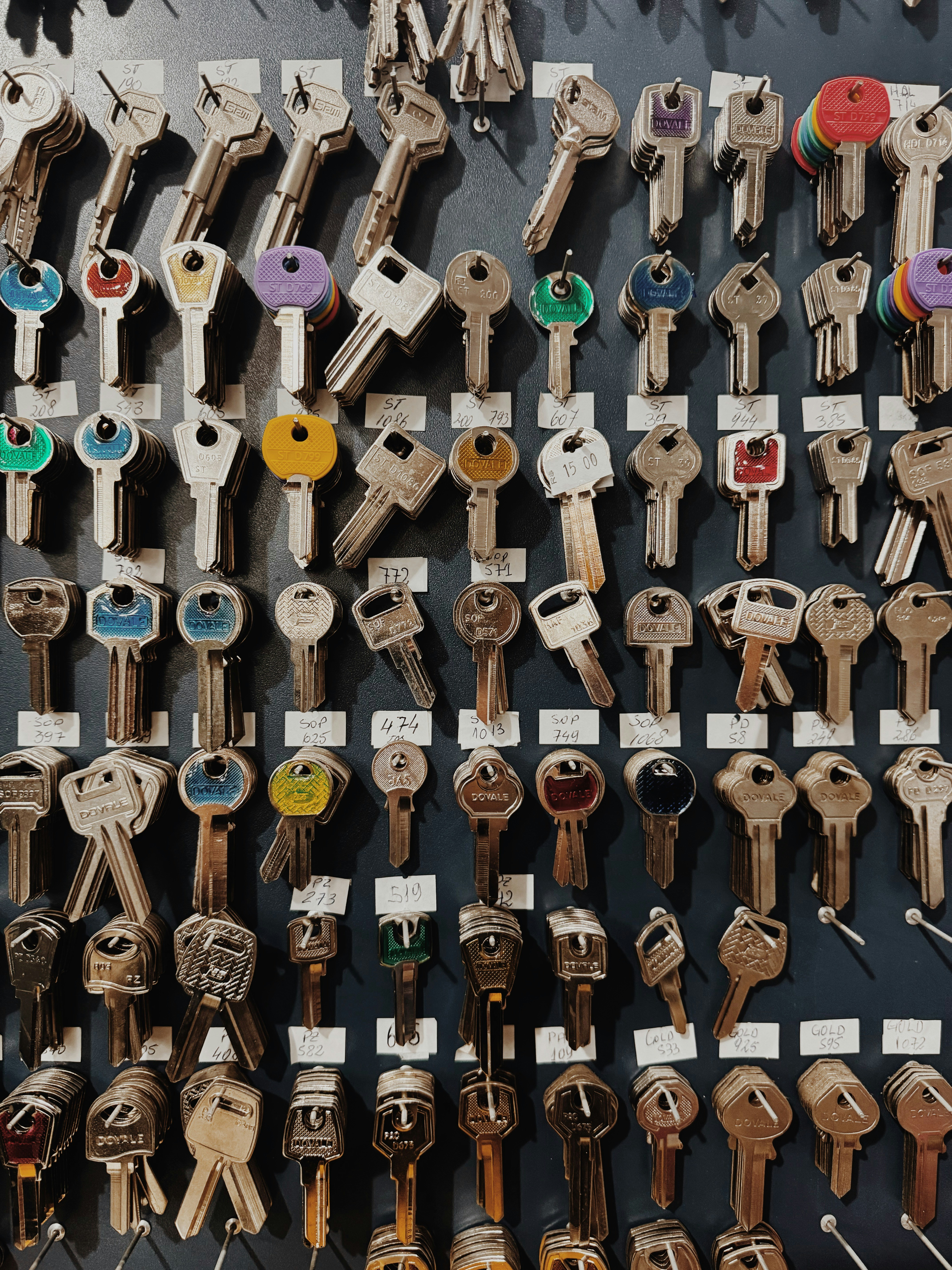 住宅の玄関扉や勝手口、事務所のドア、店舗出入口、シャッターなどの合鍵はもちろん、オフィス家具、物置などの各種収納庫の合鍵など、住居、オフィス、店舗などで使用する様々な種類の合カギ在庫を揃えています。 自転車、自動車、バイク(スクーター、原付含む)用の合鍵の取扱いもございます。 ディンプルキーなど防犯性の高い鍵の合鍵作製、メーカー純正の鍵のお取り寄せもいたします。 大量注文も承ります。まずはお気軽にご相談ください。
